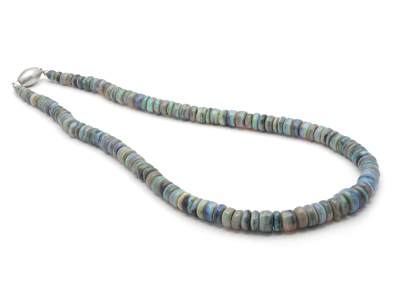 COLLIER, buttonformade opaler, lås i 18K vitguld, längd 48 cm.