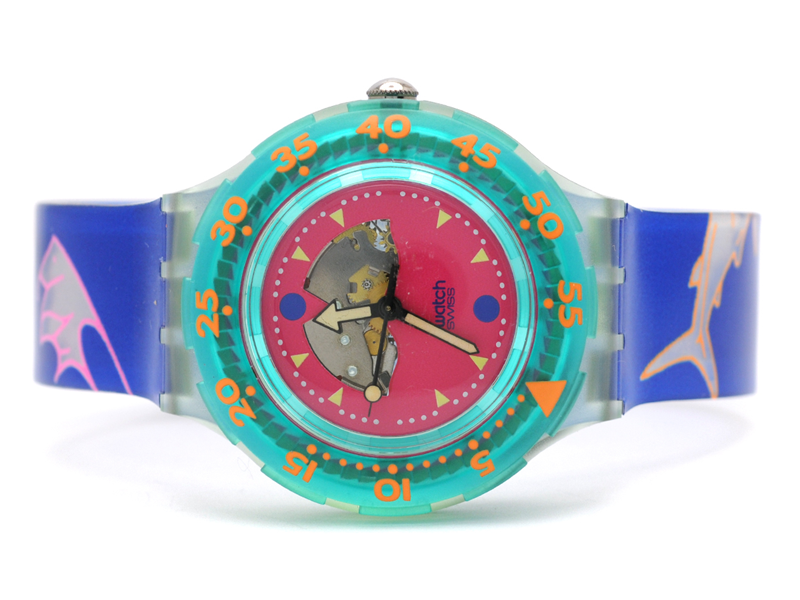 SWATCH, Scuba, Happy Fish, Ref nr. SDN 101, herrur, 38,3 mm, plast, quartz, plexiglas, integrerat plastband, originalspänne, ca 1991, etui.