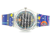 SWATCH, Ombrellone, Ref nr. GO 100, herrur, 34 mm, plast, quartz, plexiglas, integrerat textilband, originalspänne, ca 1993, etui.