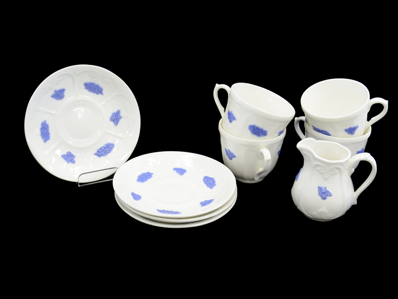 Porslin, 4st kaffekoppar samt 1st gräddkanna Blå blom defekt nagg samt några sprickor