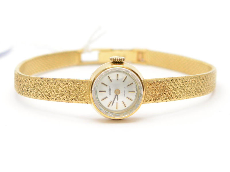 Tissot damur 18K i boett och länk, safirglas, manuell, defekt, länk skev, Bruttovikt: 26,3g