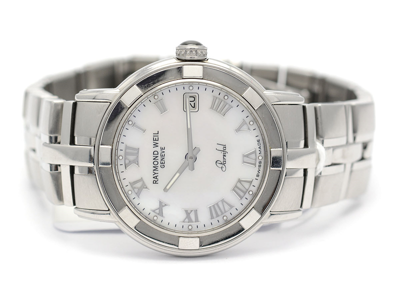 Herrur, Raymond Weil Parsifal, quartz, stål, safirglas, datum, pärlourtavla, stållänk 19cm, refnr: 9541-S1-00908, snr: V221399, med cert -12