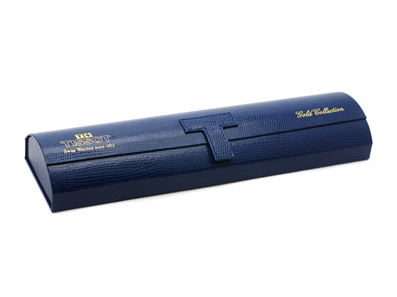 BOX, till Tissot armbandsur Gold Collection, blå, 252 x 70 x 35 mm, ca 2000.