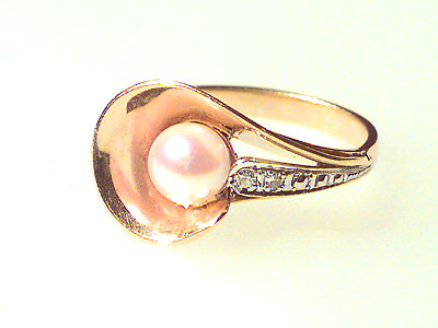 PÄRLRING 18K vikt 5.0g med odlad pärla samt 2 diamanter 0.02ct