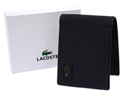 PLÅNBOK, LACOSTE, mörkblå, med Lacoste-krokodilen på framsidan, plats för åtta kort och sedlar, bomull och läder, 13x10 cm