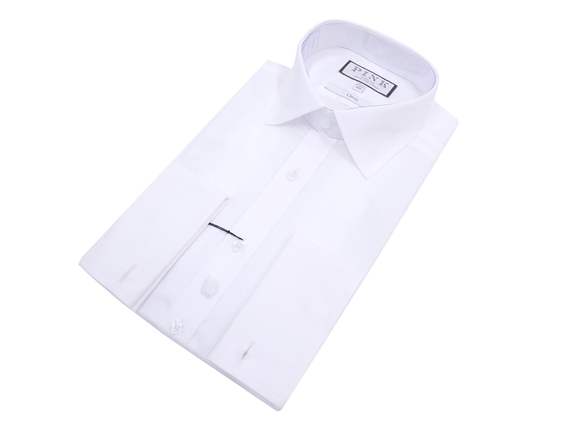 SKJORTA, THOMAS PINK, vit med dubbelmanschett och knappar i pärlemor, cotton, storlek 42, classic fit