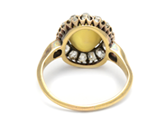 CARMOSÉRING, 18K guld, Krysoberyll kattöga ca 5,86 ct, 17 gammalslipade diamanter ca 1,40 ctv, ca TW-TCR/VS-SI, stl 17,75 mm, vikt 5 g, två diamanter är skadade i kronan.