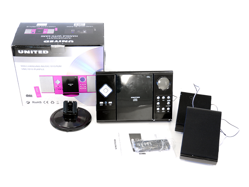 CD spelare, United VMC1010 radio, alarm, LCD display, fjärrkontroll, upphängningsbar på väggen, svart, i kartong, snr 20800085