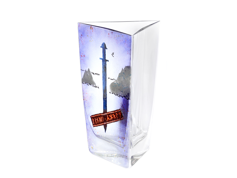 VAS, Blåtunga, höjd 230 mm, handmålad kristall, design Gösta Linderholm, Klafreström Kristall
