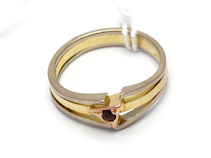 Ring tvåfärgad med röd sten Ø19 3/4 18K 6,4g