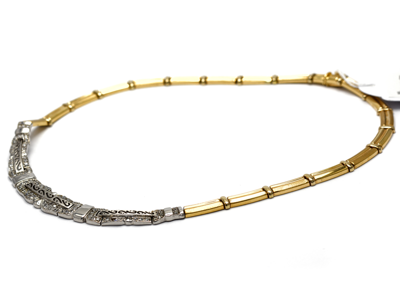 Halscollier 18K tvåfärgad med stenar/en saknas ca45cm 38,8g