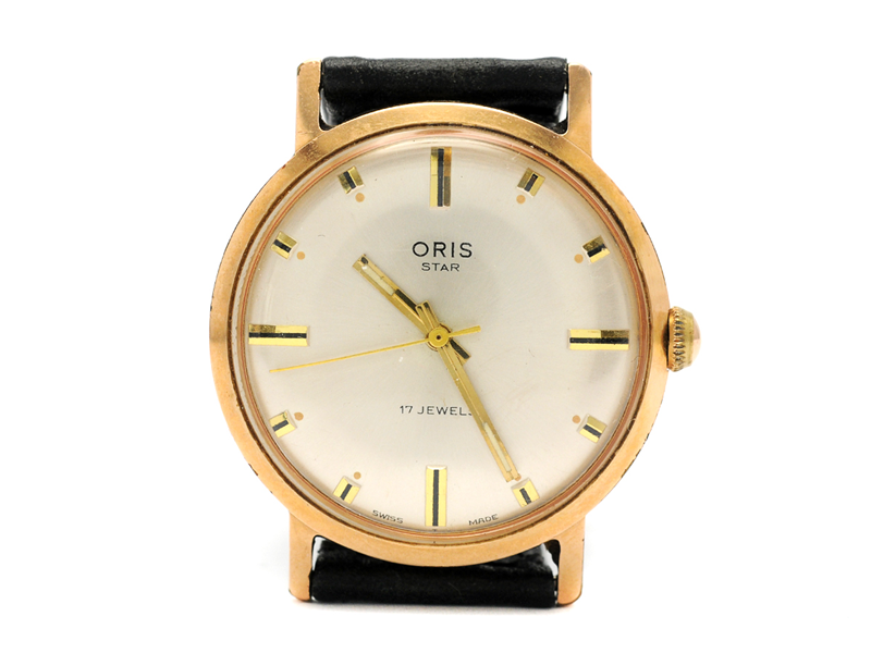 ORIS, Star, herrur, 34 mm, doublé (10 micron), manuell, plexiglas, skadad urtavla, skadad boett, läderband, ca 1965.