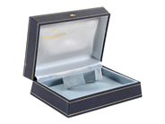 BOX, till Jaeger-Le Coultre armbandsur, 147 x 104 x 51 mm, mörkblått, skadat, ca 1970.