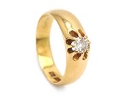 ENSTENSRING, 18K guld, gammalslipad diamant ca 0,20 ct, ca W(H), stl 17 mm, vikt 4,4 g, diamanten med nagg på rondisten.