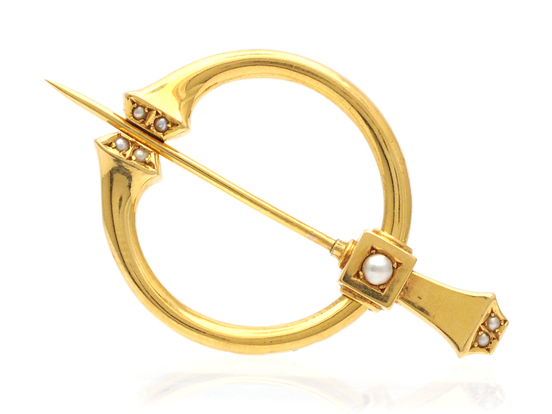BROSCH, 18K, guld, orientpärlor, 1913, vikt 4,1 g