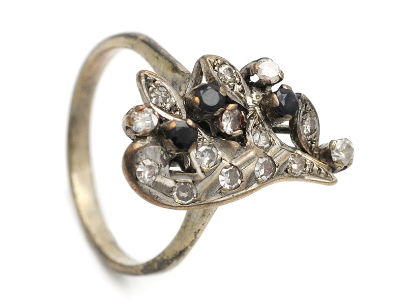 RING, silver, diamanter och safirer, stl. 17,25 mm