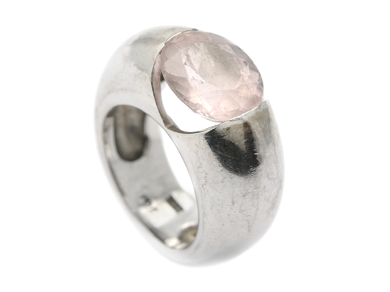 SOFIE GYLLENHAMMAR, ring 18K vitguld, ovalslipad morganit ca 5 ct, stämplad SGM, stl 17 mm, vikt 22,1 g, slitna fasettkanter samt nagg på rondist.