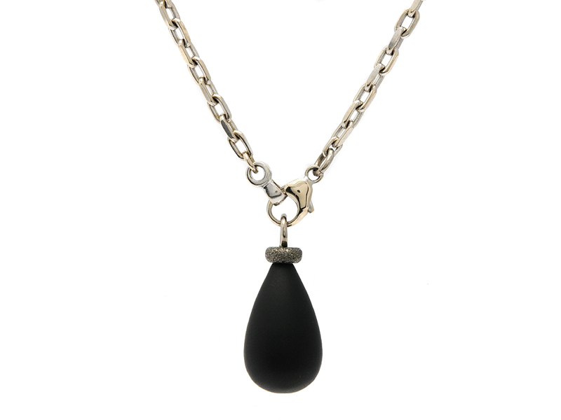COLLIER, 18K vitguld, patchwork, hänge svart agat, längd 70 cm, vikt 38,4 g.