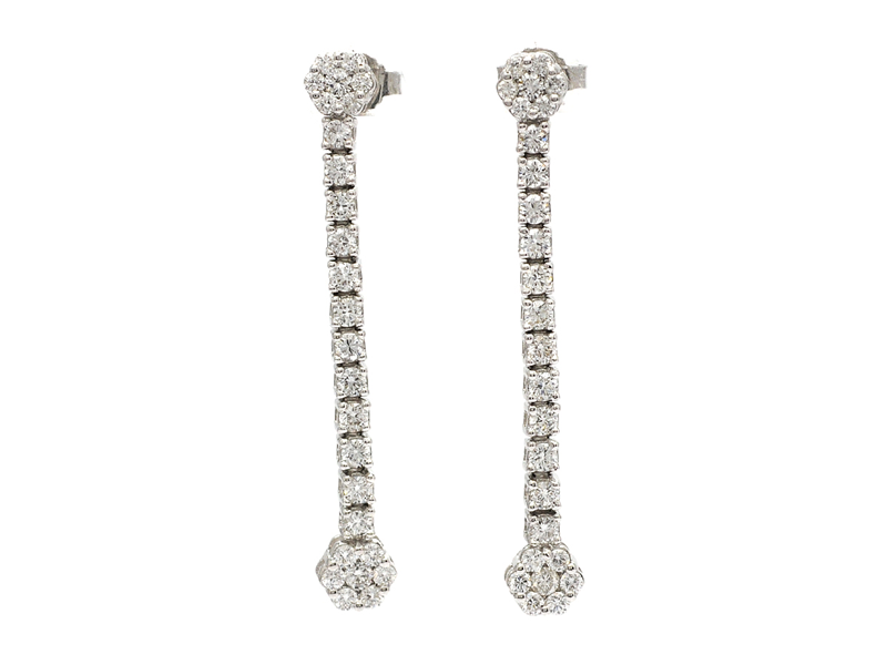 ÖRHÄNGEN, 18K vitguld, 50 briljantslipade diamanter, ca 1,47 ctv, ca TW/VS, vikt 4,3 g, stift.