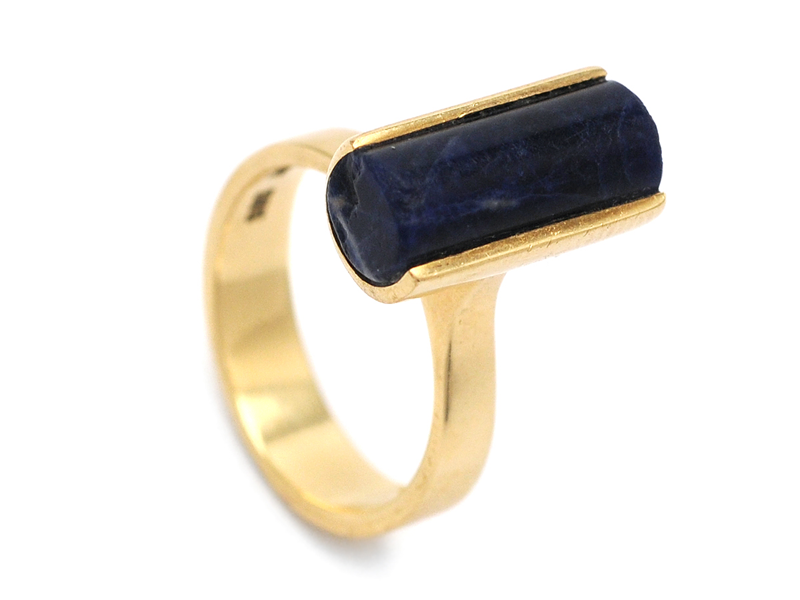 RING, 14K guld, sodalit, stl 16,5 mm, vikt 7,6 g, Danmark.