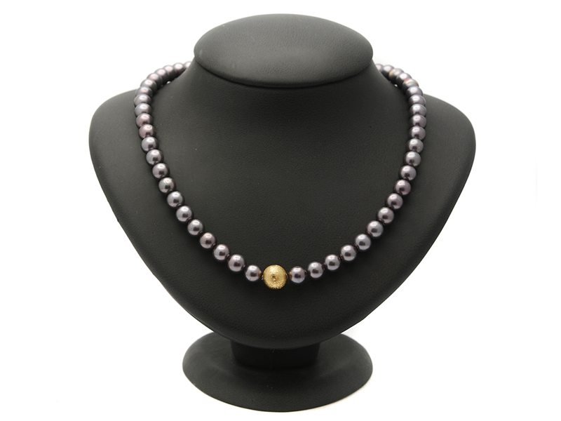 OLE LYNGGAARD, lås i 18K guld, 10,5 mm kula, vikt 3,1 g. Imitationspärlor, Ole L etui.