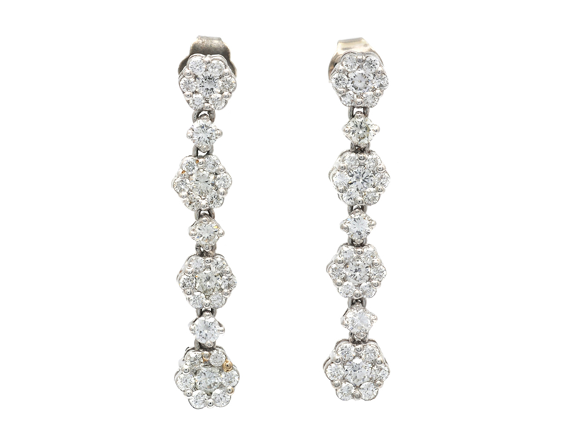 ÖRHÄNGEN, 18K vitguld, 54 briljantslipade diamanter, ca 1,46 ctv, ca TW-W/VS-SI, 2 stenar ca TCr-CR, längd 3 cm, vikt 3.4 g.