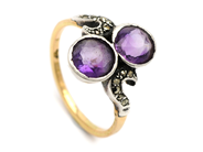 RING, 18K guld/silver, 2 ametister (slitna) och markasiter (2 skadade), stl 17,75 mm, vikt 3,5 g.