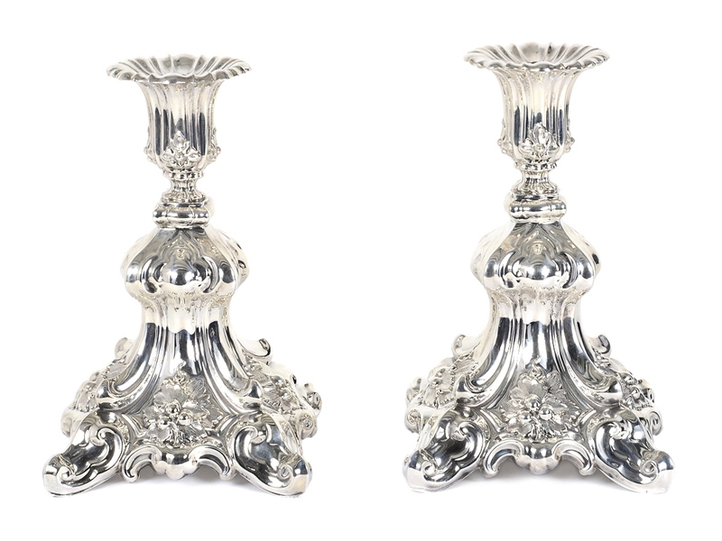 LJUSSTAKAR, ett par, silver, nyrokokostil, E Nilsson Halmstad 1964, höjd 24 cm, vikt 1896 g.