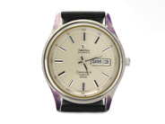 OMEGA, herrur, 33,5 mm, Cal 1430, Serie nr. 47694043, Ref nr. BA 196.0295, Boett nr. 1960295, 18K guld, quartz, plexiglas, datum, skadad urtavla, gravyr, ca 1985, metallänk ej original.