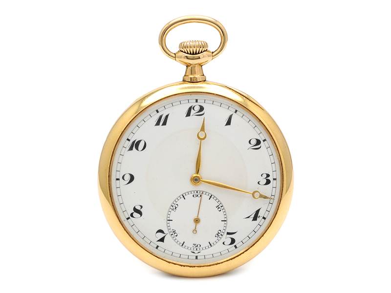 IWC, fickur, 49 mm, Cal 73 A (H4), Serie nr. 664541, Boett nr. 758591, 14K guld, ankargång, urtavla ej signerad, skadad urtavla, innerlock i 14K guld, bucklor, ca 1917.