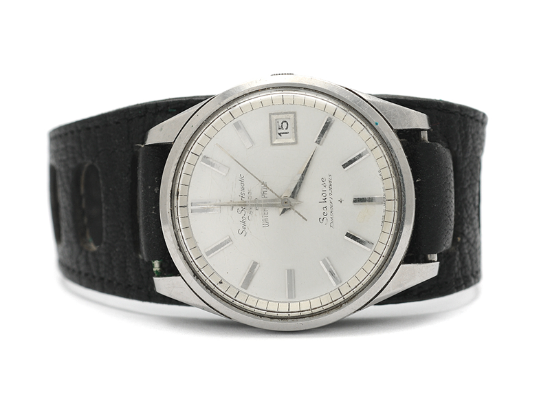 SEIKO, Sportsmatic, Calendar, Seahorse, herrur, 36,5 mm, stål, automatisk, plexiglas (skadat), datum, skadad urtavla, läderband, ca 1968.