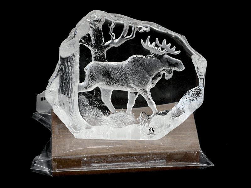 Prydnadsföremål, Målerås, Mats Jonasson, 3566, höjd 13cm, Älg, träsockel medföljer