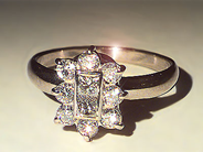 RING, 18K vitguld med 8 briljanter samt 2 prinses slipade diamanter tot ca 0.86 ct W/VS-SI, stl 18 mm.