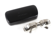 SOLGLASÖGON, BVLGARI, M630900, ljusgrå transparanta bågar, putsduk samt etui.