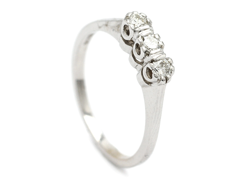 RING, 14K vitguld, 3 briljantslipade diamanter ca 0,18 ctv, ca TW/VS-SI, stl 17,25 mm, vikt 2,4 g.