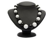 PÄRLCOLLIER, odlade sötvattenspärlor, färgade grå, mörka stenar, lås och detaljer i vitmetall, längd 44 cm.