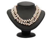 PÄRLCOLLIER, odlade sötvattenspärlor, lås och detaljer i vitmetall med paste, längd 44 cm.