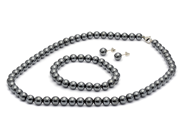 PÄRLCOLLIER, odlade sötvattenspärlor, färgade grå, lås och detaljer i vitmetall, paste, längd 44 cm.