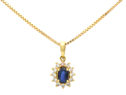 HÄNGE/KEDJA, 18K guld, blå safir ca 0,65 ct, 12 briljantslipade diamanter ca 0,24 ctv, ca TW(G)/VS, längd 38 cm, vikt 4,5 g.