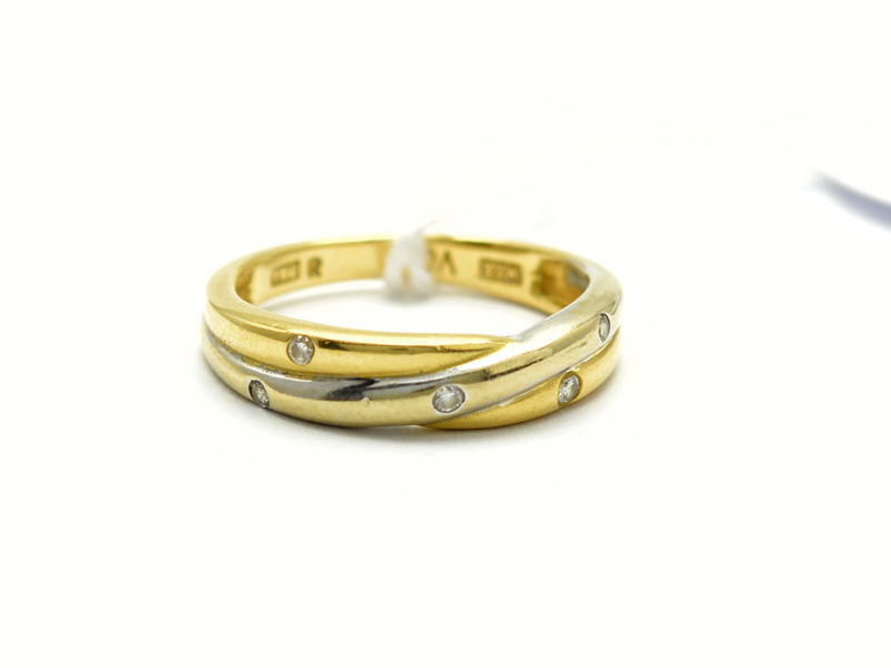 Ring tvåfärgad 18K 4g Ø17 1/2 med små diamanter 5xca0,01-0,02ct
