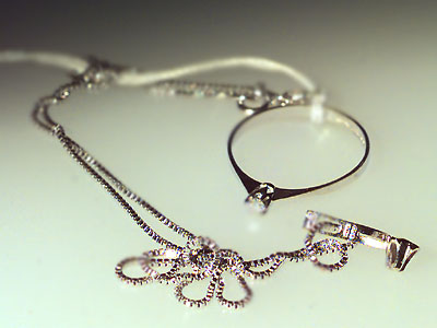 RING, HÄNGE / KEDJA, 18K vitguld med 2 diamanter ca. 0.06 ct. L= 38 cm, stl 18 1/2 mm