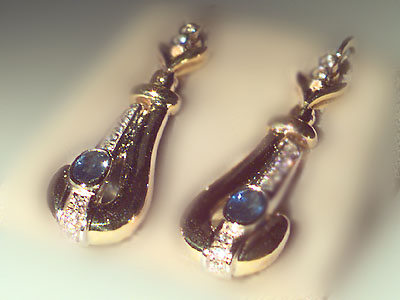 ÖRHÄNGEN, 18K guld med 2 safirer ca. 0.70 ct. 20 briljanter 0.20 ct., vikt 10.0 g