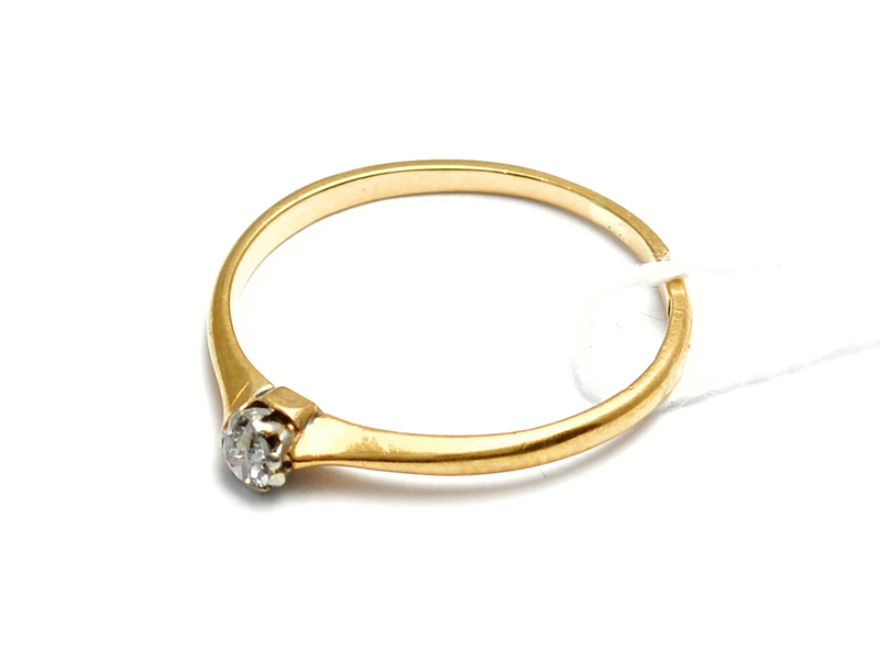 Ring 18K 1,4g Ø17¼ med diamant 1xca0,10ct, skev, skadad klo