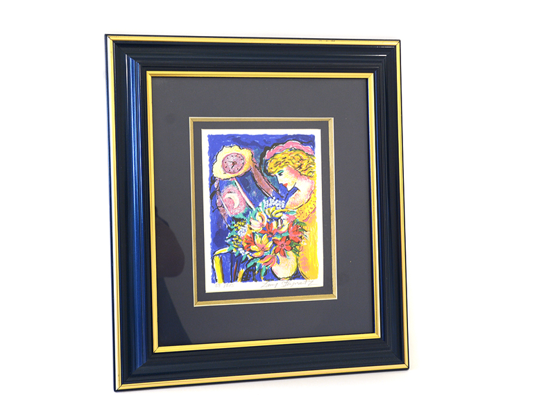 Konst Färglitografi nr 58/275 Zamy Zteynovitz 33x37cm med blå och guldfärgad ram något slitage på ramen