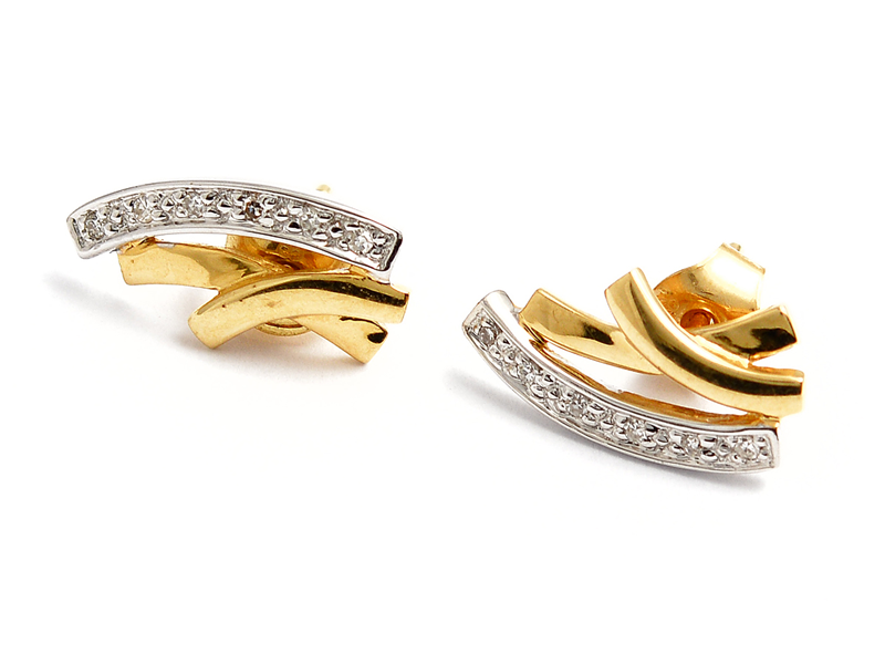 Örhängen ett par 18K tvåfärgade med diamanter 12xca0,005ct 2g