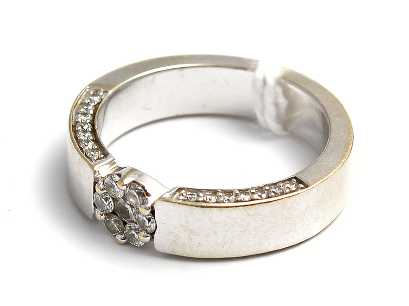 Ring 18K 8,1g Ø17¾ vitguld med diamanter 1xca0,05ct, 6xca0,03ct, 28xca0,01ct