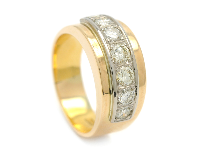 ALLIANSRING, 18K guld/vitguld, 7 briljantslipade diamanter ca 1,00 ctv, ca TCa-Ca/VS-SI, stl 17,5 mm, vikt 8,1 g.