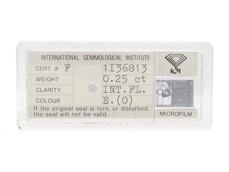 DIAMANT, briljantslipad, 0,25 ct, River(E)/IF, IGI cert F1I36813, förseglad.