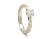 RING, 18K vitguld, briljantslipad diamant ca 0,45 ct, ca TW/VS, 2 trapetsslipade diamanter ca 0,15 ctv, ca TW/VS, stl 16,25 mm, vikt 4,1 g.