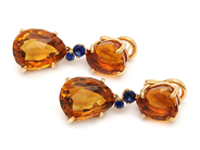 POMELLATO, örhängen, Bahia, 18K roséguld, citriner, safirer, Italien, längd 3,3 cm, vikt 13,8 g, stift/clips.